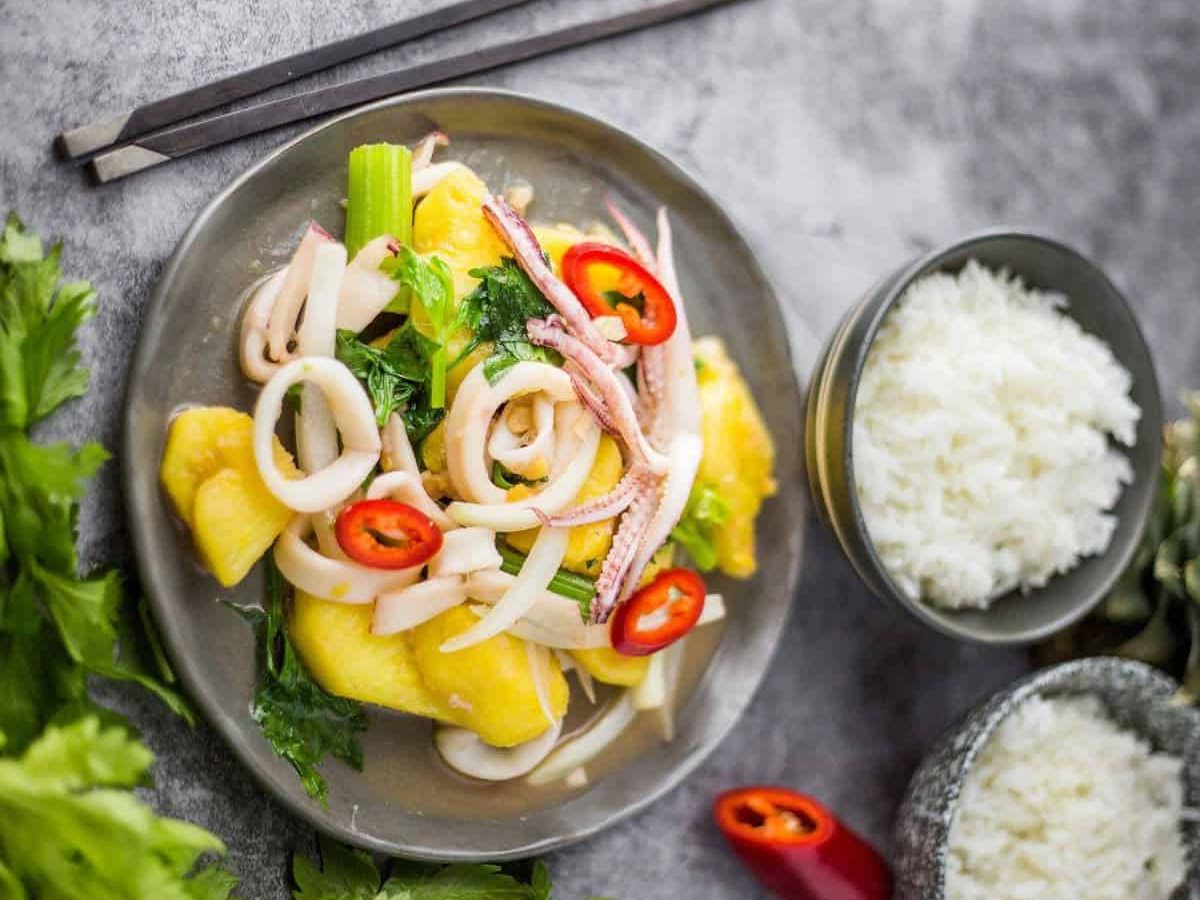 Xào mực với dứa