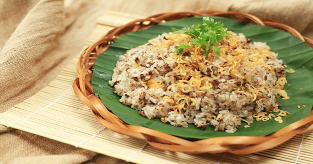 Trộn đều gạo với đường, muối, mỡ , đem hấp chín. Sau đó, rãi ra để nguội