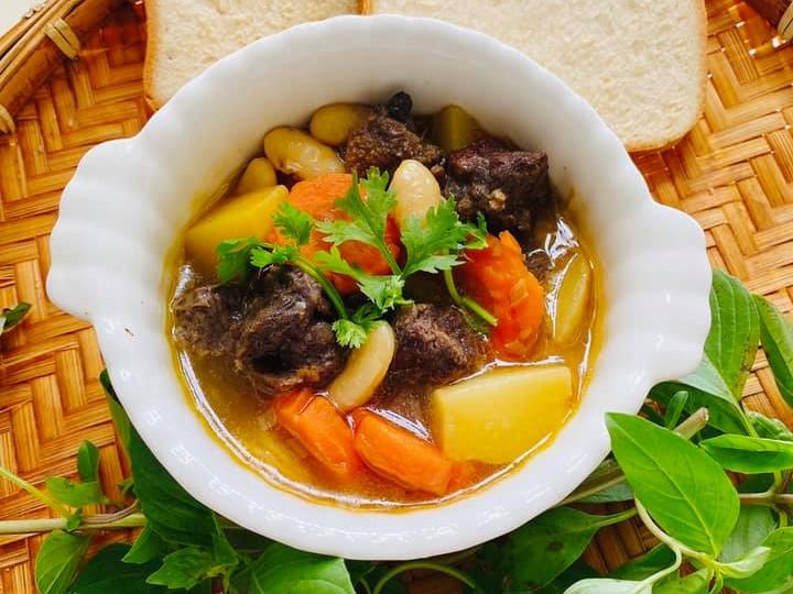 Ăn nóng cùng bánh mì hoặc cơm trắng. Món hầm này các nguyên liệu nên nấu chín mềm vừa ăn không nên hầm mềm quá dẫn đến nát mất hết vị ngon.
