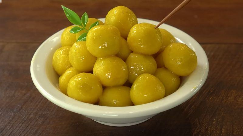 Khi bánh đã chín, vớt bánh ra và để vào một thau nước đá cho nguội. Sau khi bánh nguội thì bạn có thể thưởng thức bánh.
