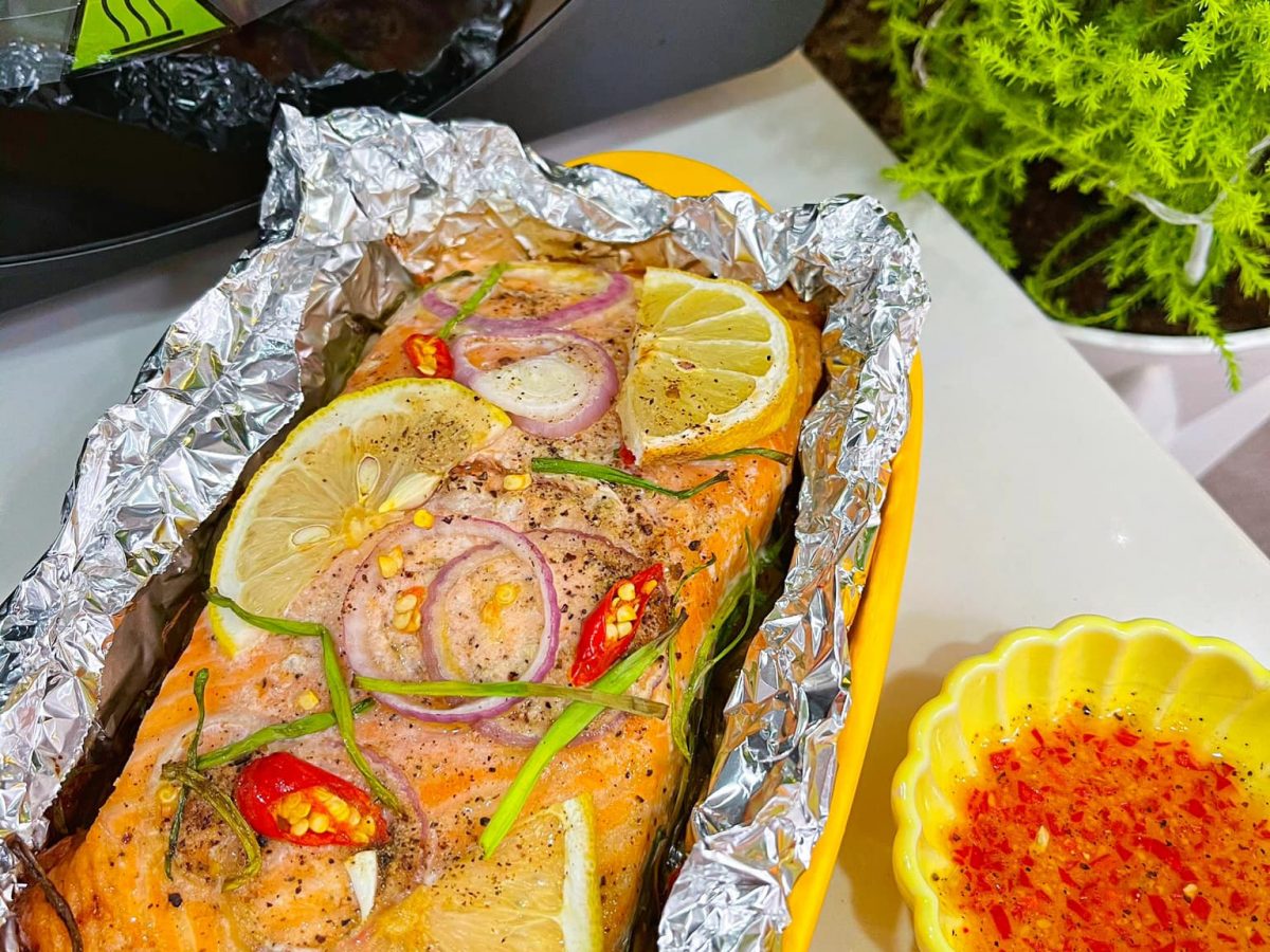 Cách làm cá hồi nướng giấy bạc bằng nồi chiên không dầu