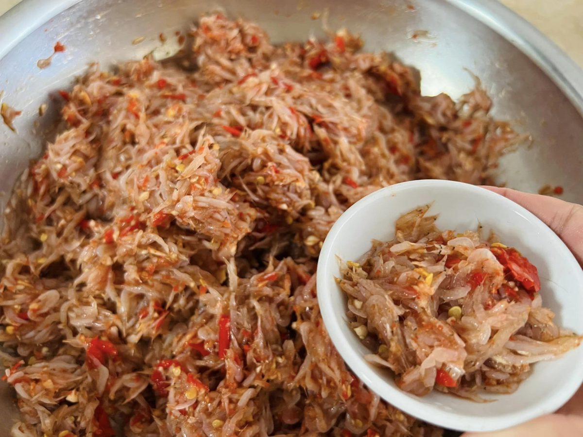 Mắm tép muối xổi có màu đỏ bắt mắt, cực kỳ kích thích vị giác. Tép không nặng mùi mắm mà thơm lừng mùi tỏi, gừng và vị cay nồng của ớt. Với món ngon dân dã này, đảm bảo bạn sẽ cực kỳ hao cơm đấy!