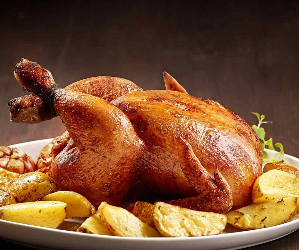 Gà nướng mật ong thơm lừng, da gà nóng giòn hấp dẫn kết hợp với phần thịt gà bên trong mềm ngon, ngọt nước không bị khô.