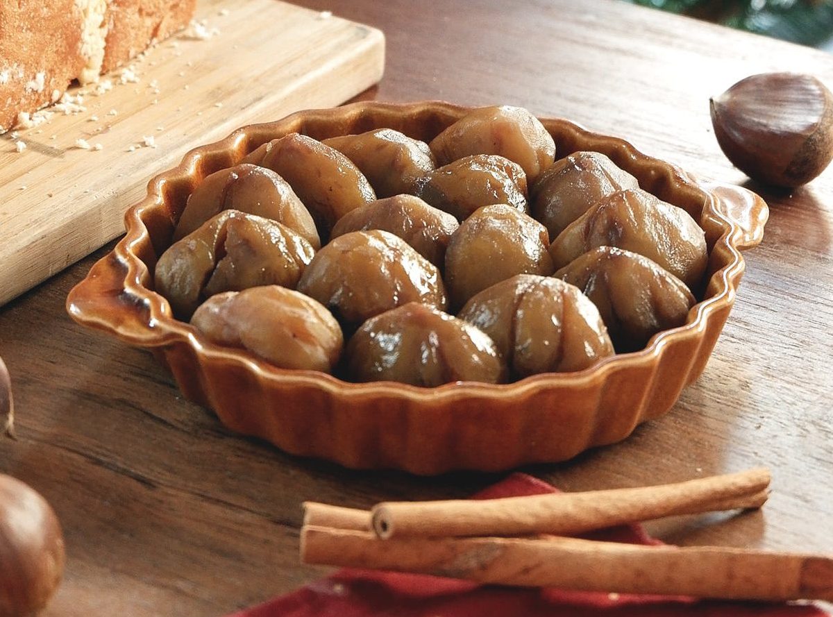 Hạt dẻ nấu với đường nâu và mật ong, ướp thêm hương vị cam quế gừng và rượu rum. Với cách nấu tỉ mỉ giúp hạt dẻ không bị bở hay chai cứng, hạt dẻ mềm và có độ trong.