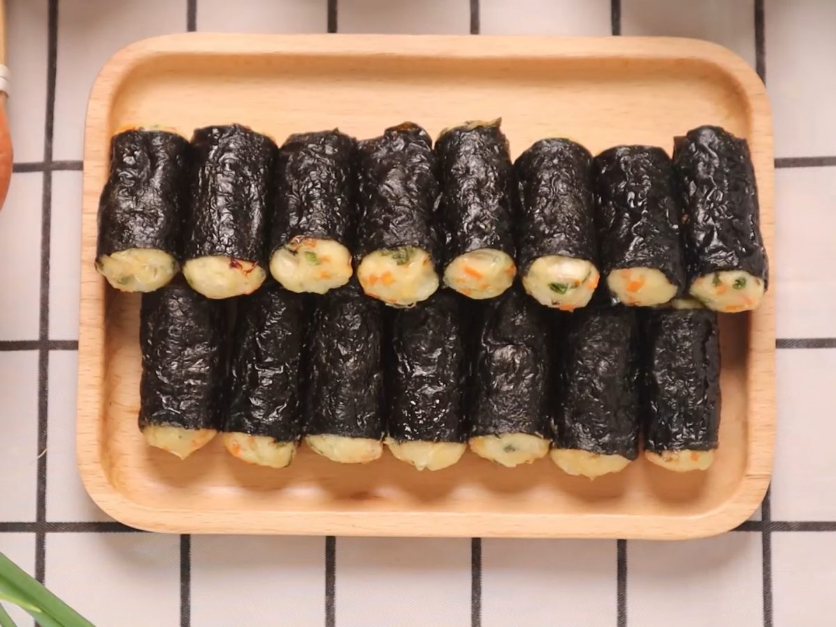 Sự kết hợp giữa thịt gà ngọt và dai, cùng với cà rốt và hành tây thơm giòn được cuốn trong lớp rong biển, chắc chắn sẽ khiến nhiều người thích mê.