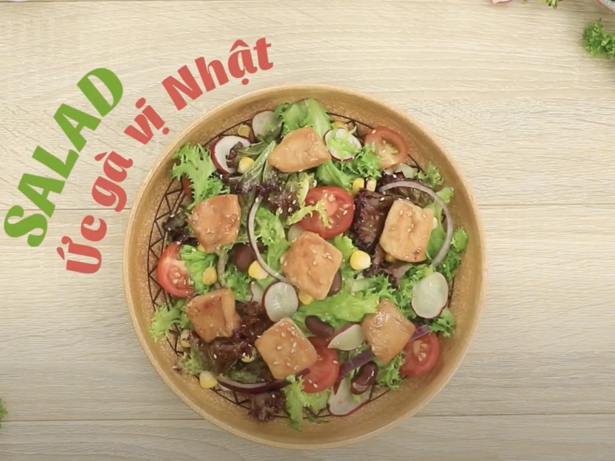 Món salad được kết hợp từ nhiều loại rau củ bổ dưỡng, ăn cùng ức gà chiên sốt Nhật mềm đậm vị, không những hỗ trợ giảm cân mà còn giúp đẹp da nữa đấy!