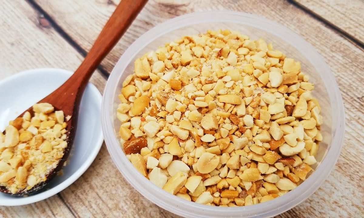 - Để khi ăn cảm nhận được độ bùi thơm ngon của đậu phộng bạn không nên giã đậu phộng quá nhuyễn.
