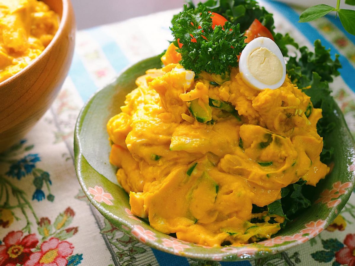 Salad bí đỏ kiểu Nhật là món ăn “chống ngán” nhưng đầy đủ dinh dưỡng. Với cách chế biến này, bạn sẽ thưởng thức món salad ngậy béo của sốt mayonnaise, vị chua dịu giòn giòn của dưa chuột và hành tây. Bạn cũng có thể biến tấu món salad bí đỏ này với các loại hạt: óc chó, hạt điều hoặc thêm đậu cove … theo ý thích để món ăn thêm hấp dẫn hơn.