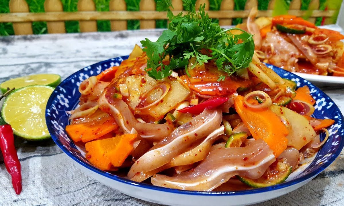 Cách làm tai heo sốt thái ngon, giòn