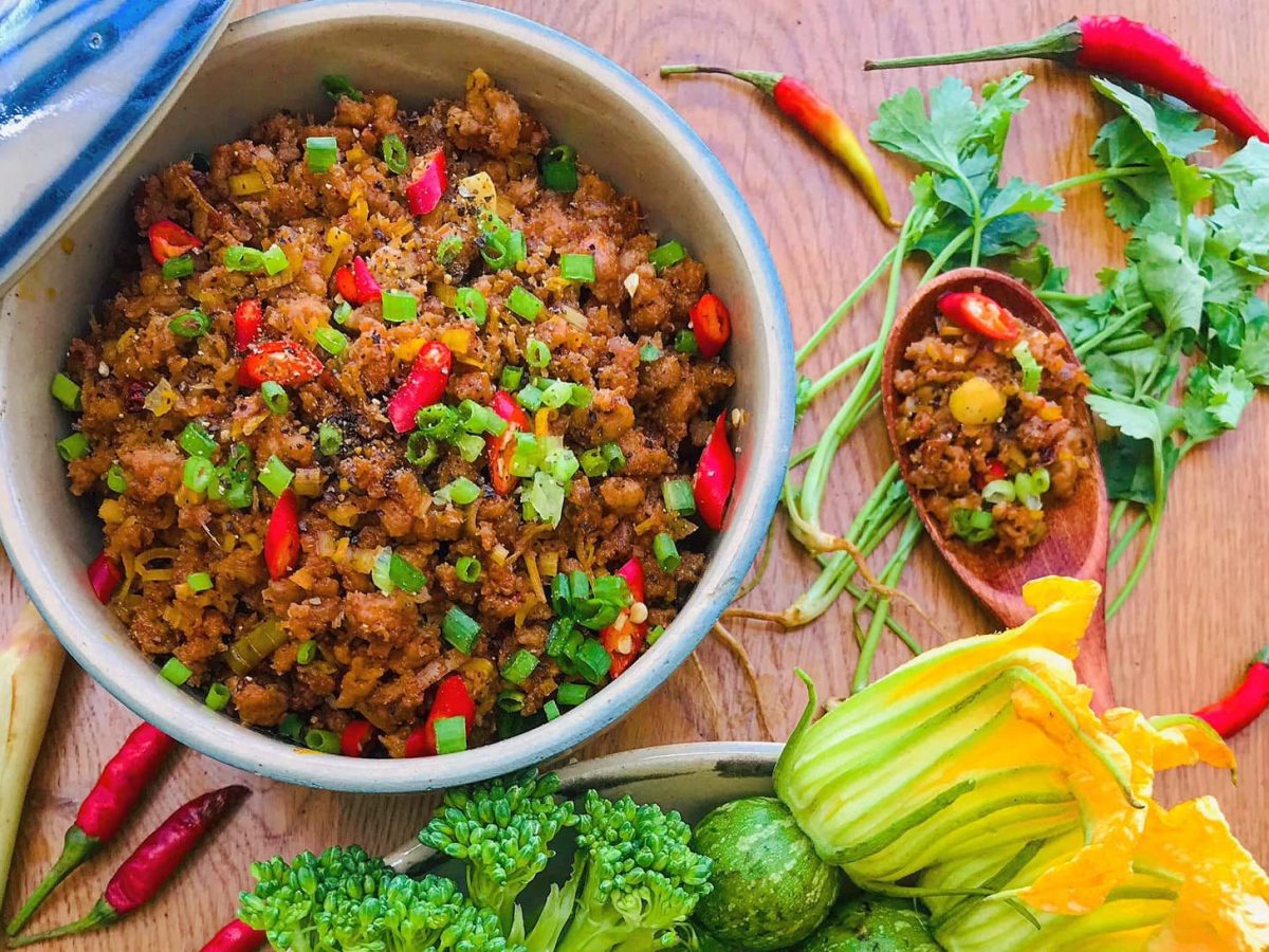 Món mắm ruốc xào thịt xay đậm đà, ngọt ngọt, mặn mặn, cay cay, rất là hấp dẫn.