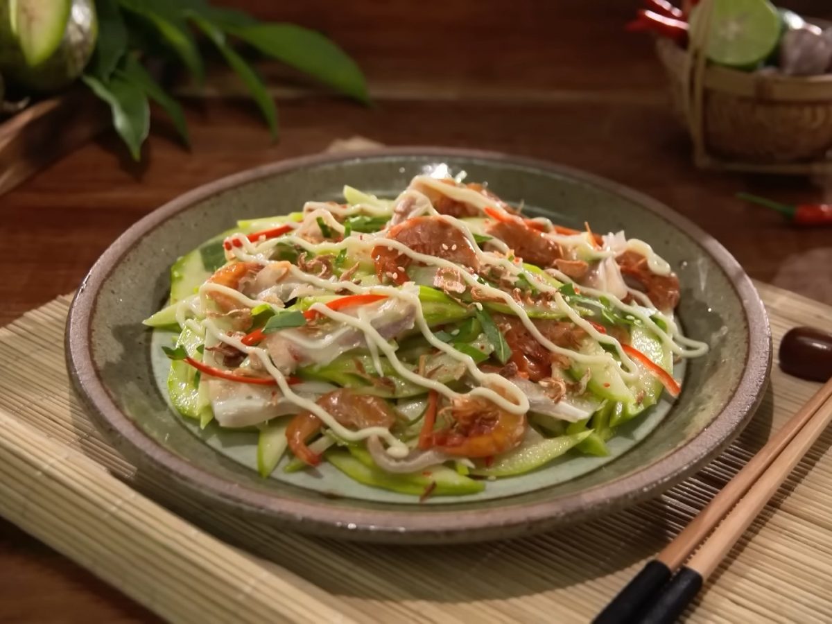 Cách làm tôm chua trộn cóc xanh mayo giòn thanh