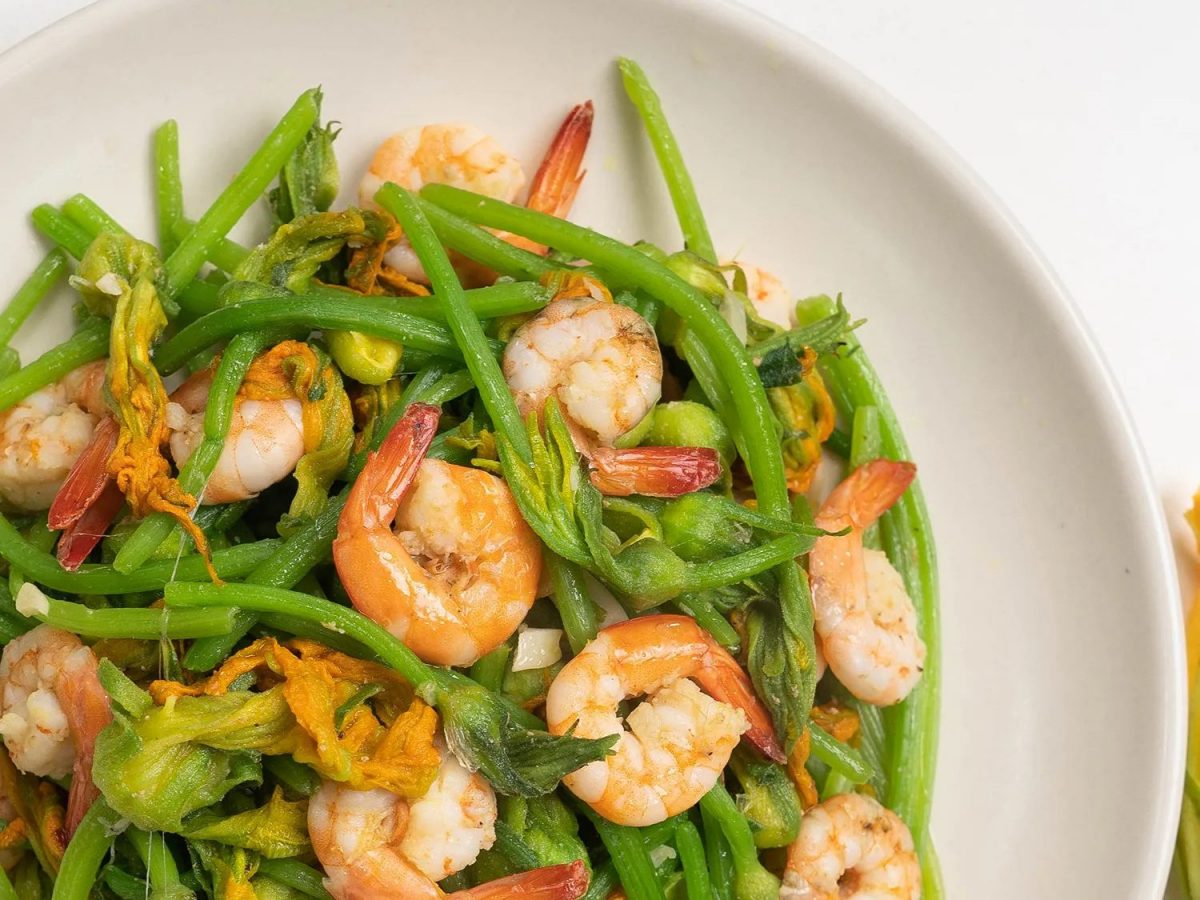 Bông bí xào tôm tươi là 1 trong những món ngon từ bông bí và tôm. Món ăn ngon giòn lạ miệng, giàu dinh dưỡng lại có độ bùi ngậy. Đặc biệt, màu sắc đẹp mắt cũng là điểm cộng cho món xào ngon này.