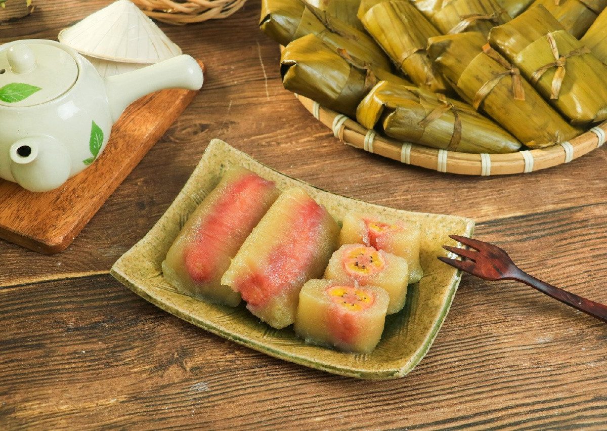 Món bánh với lớp vỏ khoai mì trong suốt bọc bên trong nhân chuối hồng tươi, hương vị dẻo ngọt, thêm chút béo của nước cốt dừa, thơm thoang thoảng mùi lá chuối nữa, cả một bầu trời tuổi thơ như ùa về trong gian bếp gia đình.