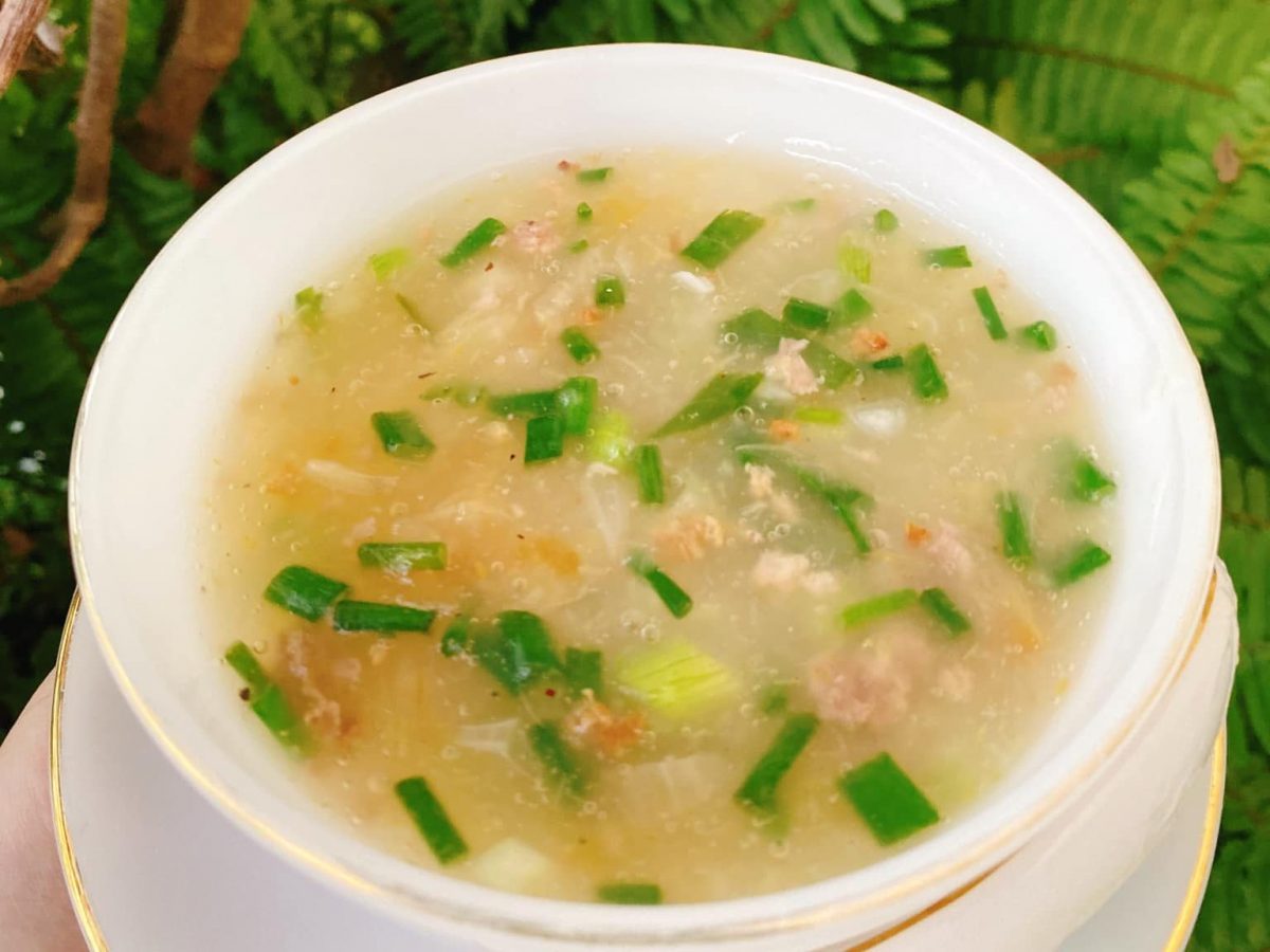 Bát canh sánh, dẻo quẹo, thêm thịt đậm đà, hành hoa, hành phi thơm phưng phức.