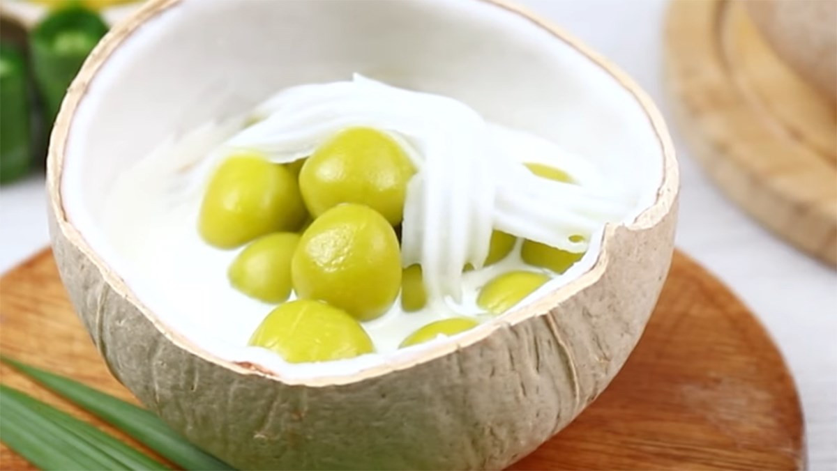 Từng viên bơ tròn trịa có màu xanh bắt mắt, ăn vào ngọt vị bơ lại dẻo dẻo dai dai vui miệng. Vị nước cốt dừa béo ngậy đặc trưng lại thơm thoang thoảng mùi lá dứa.