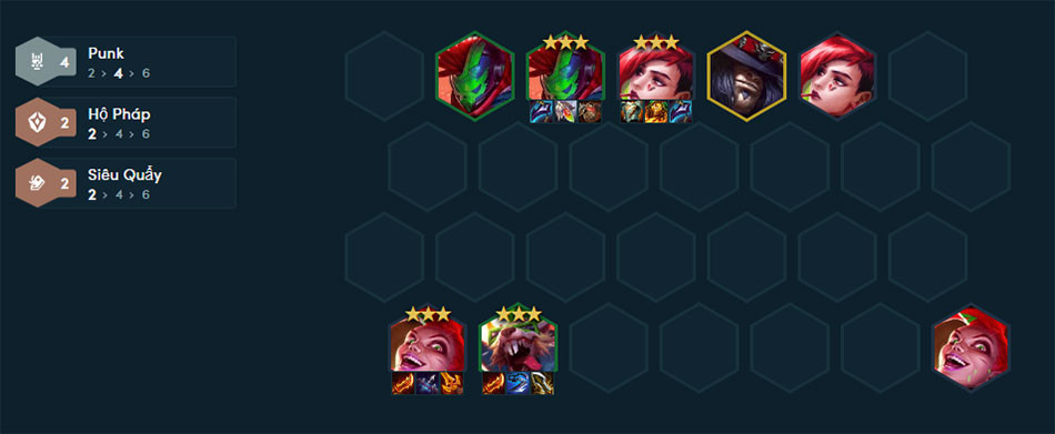 - Tộc Hệ kích hoạt: 4 Punk, 2 Hộ Pháp, 2 Siêu Quẩy