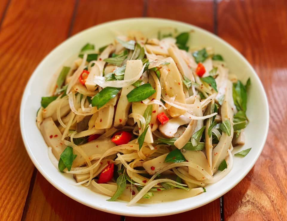 Nấm đùi gà trộn hành tây rau răm