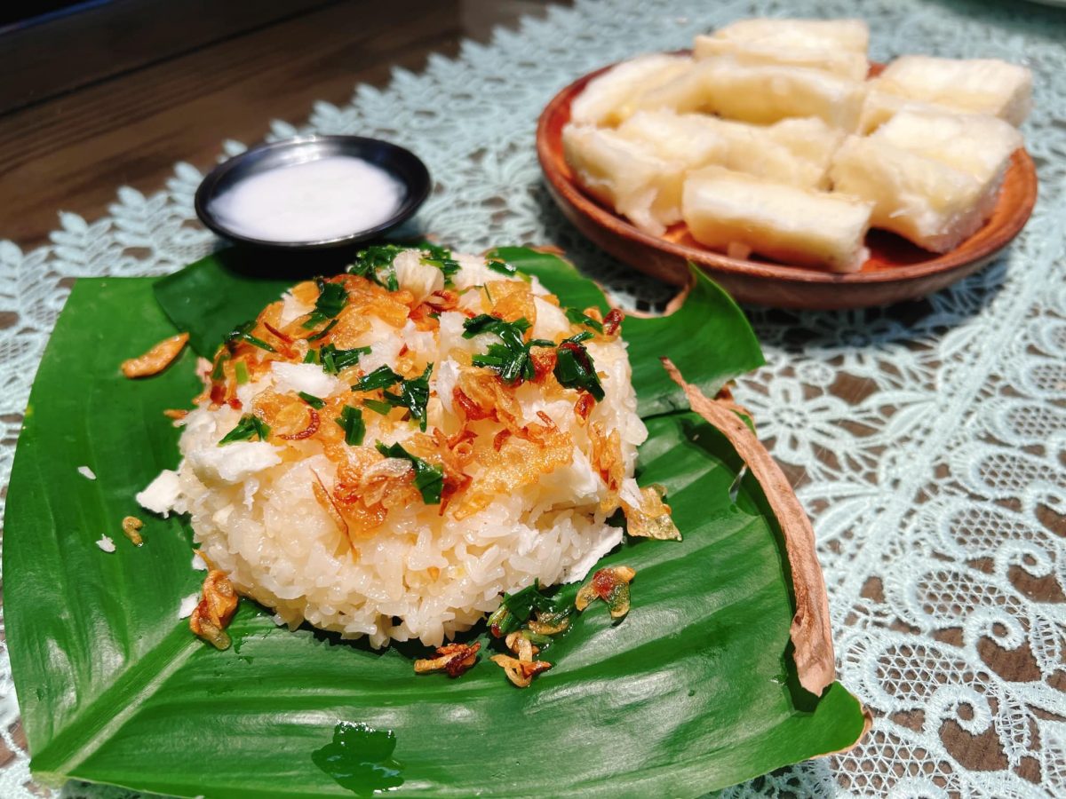 Xôi sắn có vị ngon ngọt, béo bùi, thơm mùi dừa và lạc vừng khiến bữa sáng mở đầu cho ngày mới tràn ngập hương vị phong phú.